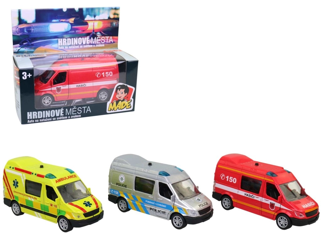 Avasta põnev tegevus Linna kangelased väikeste autode sarjaga City Collectionist. Tagasisõiduga päästeauto ja selle valgus- ning heliefektid tagavad realistliku mängu. Saadaval on 3 varianti – kiirabi, politsei ja tuletõrje. Toiteks on 2 LR41 patareid.
