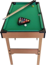 Kompaktne laste piljardilaud kvaliteetses puidust teostuses pakub suurepärast lõbu nii väikestele kui ka suurtele mängijatele. Komplektis on 2 keppi, 16 piljardikuuli ja täielik tarvikute komplekt. Tänu mõõtmetele sobib ideaalselt lastetuppa ning esimeseks tutvumiseks mängureeglitega.