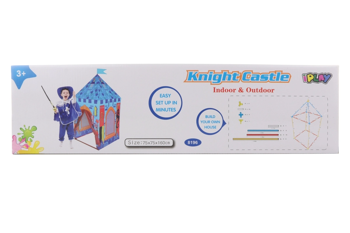 Seikluslik lossiteemaline telk muudab iga toa ja aia fantaasiamaailmaks. Tänu mõõtudele u 75 × 75 × 160 cm pakub see lastele küllaldaselt ruumi mängimiseks, peitmiseks ja salajasteks missioonideks. Kerge konstruktsioon, lihtne kokkupanek ja kasutus nii toas kui õues teevad sellest suurepärase valiku väikestele rüütlitele alates 3. eluaastast.