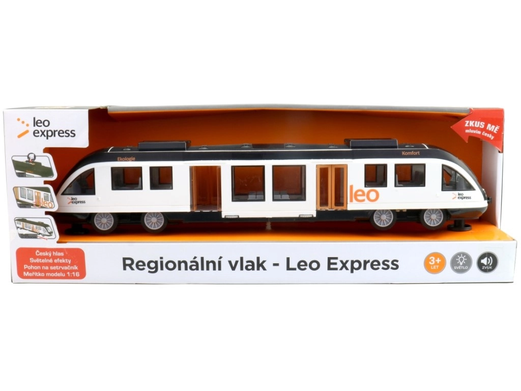 Vii lapsed raudteeseiklusele realistliku regionaalrongiga LEO EXPRESS. Mänguasi pakub tšehikeelseid teadustusi, valgusefekte ja hoorattavedu sujuvaks sõiduks ka ilma rööbasteta. Komplektis on AG13 patareid, nii et saate kohe mängima hakata. Sobib lastele alates 3. eluaastast.