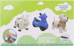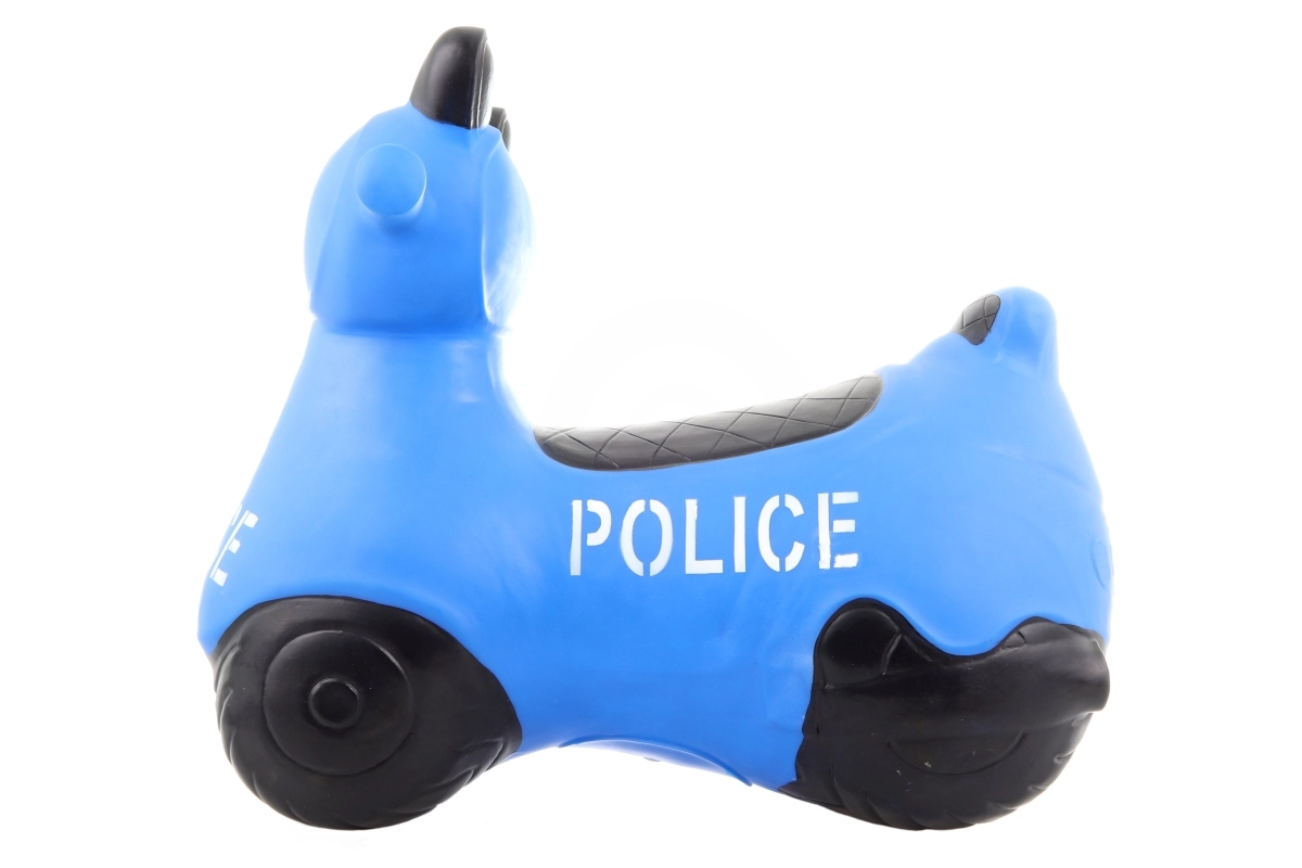 Lõbus kummist hüppeloom mootorratta kujul politseimotiiviga lastele alates 1. eluaastast. Toetab tasakaalu arendamist, suurt motoorikat ja koordinatsiooni, on stabiilne, vastupidav ja kergesti puhastatav. Komplektis on pump kiireks täispumpamiseks.