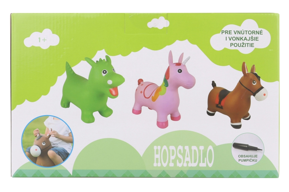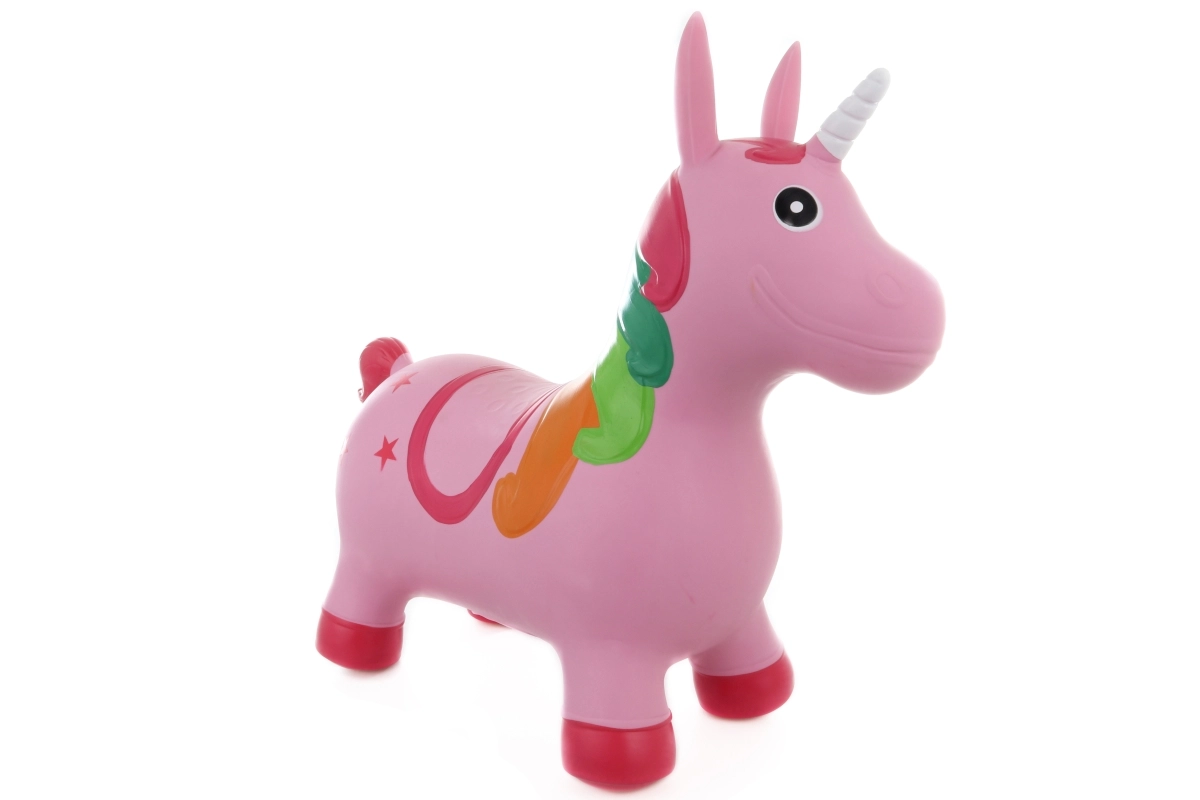 Lõbus kummist ükssarviku-kujuline hüppeloom rõõmustab iga last. Pakub stabiilset istet, lihtsat hüppamist ning toetab liikumist ja tasakaalu. Komplektis on pump, maksimaalne kandevõime 50 kg ja mugav istmekõrgus 27 cm.