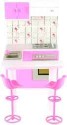 Stiilne nukkude Glorie köögikomplekt muudab iga lastetoa väikeseks kulinaarseks kuningriigiks. Komplektis on kööginurk avaneva ahjauksiga (dekoratiivne), valamu ja pliit (mittetöötavad), samuti söögilaud koos kahe baaritooliga. Ideaalne loominguliseks mänguks alates 3. eluaastast.
