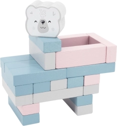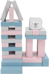 Komplekt sisaldab 56 puidust klotsi ja 2 täringut paljudeks mänguvariantideks.
