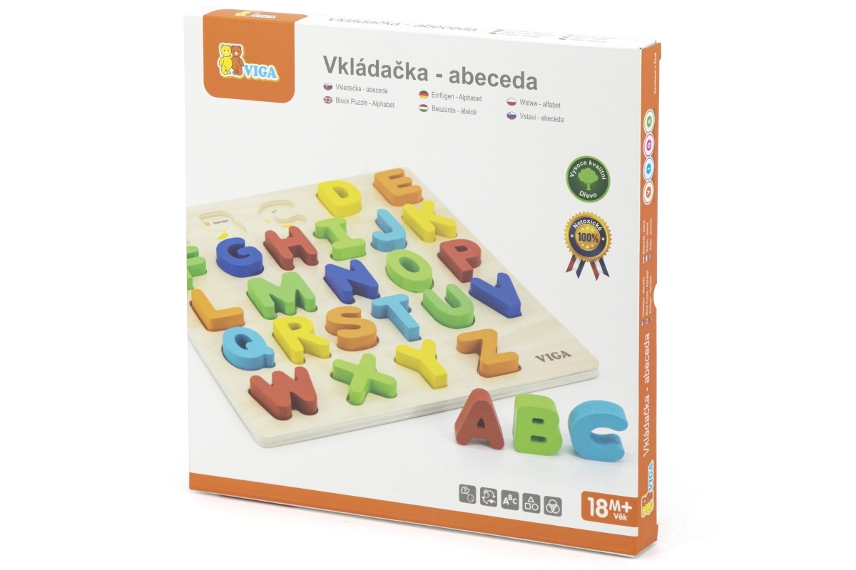 Avastage õppimise võlu selle kauni puidust puslega, mis sisaldab kokku 26 tükki ja esindab kõiki Tšehhi tähestiku tähti.