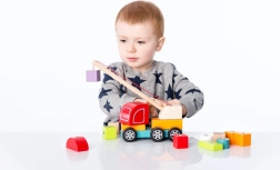 Mänguasi toetab sensomotoorsete oskuste ja loovuse arengut tänu võimalusele klotse tõsta ja laduda.