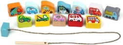 Cubika nöörile lükitavate sõidukite komplektis on 12 puidust elementi erinevate transpordimotiividega ning üks 45 cm pikkune nöör puidust pulgakesega. Lapsed saavad 8 kaasasoleva eeskuju abil treenida mälu ja käteosavust ning samal ajal nautida arendavat mängu.