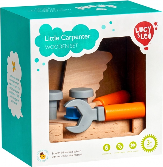 Avasta loominguline meistrimaailm laste tööriistakomplektiga Lucy & Leo „Väike tisler“. See kvaliteetne 9-osaline puidust komplekt sisaldab hoidikut ja põhitööriistu – saagi, haamrit, mutrivõtit ja kruvikeerajat – mida täiendavad kruvid ja naelad. Mänguasi on valmistatud ohutust puidust ja plastist, sileda viimistlusega, ning arendab suurepäraselt peenmotoorikat, silma–käe koordinatsiooni ja loovat mõtlemist.