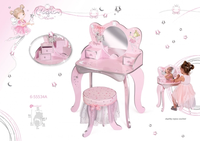 See puidust tualettlaud on muinasjutust inspireeritud ja on ideaalne täiendus igasse tüdrukute tuppa. Seda kaunistavad kaunid trükised ning komplektis on