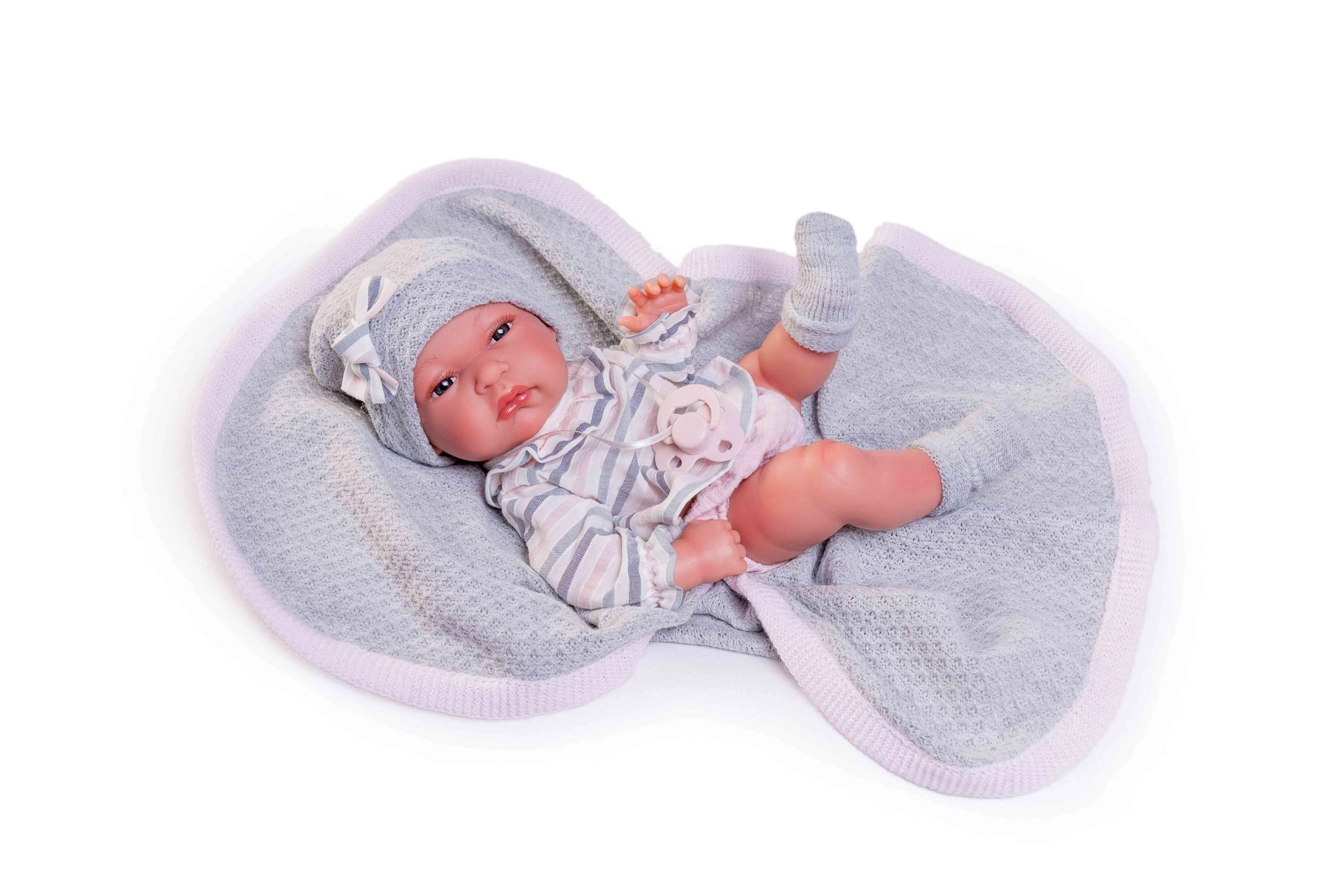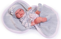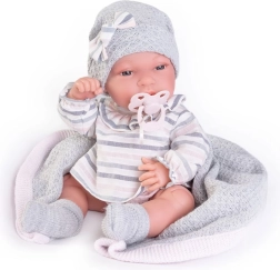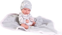 Armas beebinukk ANTONIO JUAN täisvinüülist kehaga, kõrgus 33 cm, rõõmustab kõiki väikeseid hoolitsejaid. See on valmistatud erilisest pehmendatud vinüülist, millel on realistlikud vastsündinu detailid, sh sugu, ning seda võib muretult vannitada (v.a ripsmete piirkond). Komplektis on kingituskarp ja kvaliteetne teostus, rõhuasetusega ökoloogiale ja jätkusuutlikele materjalidele.