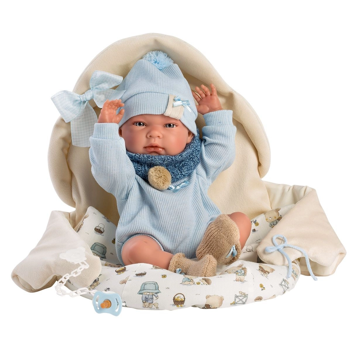 Komplektis on stiilsed riided, sh body, müts, sokid, sall ja magamiskott ning dekoratiivne lutt. Iga nukk on hoolikalt pakitud kaunistatud karpi, et iga lahtipakkimine oleks elamus.