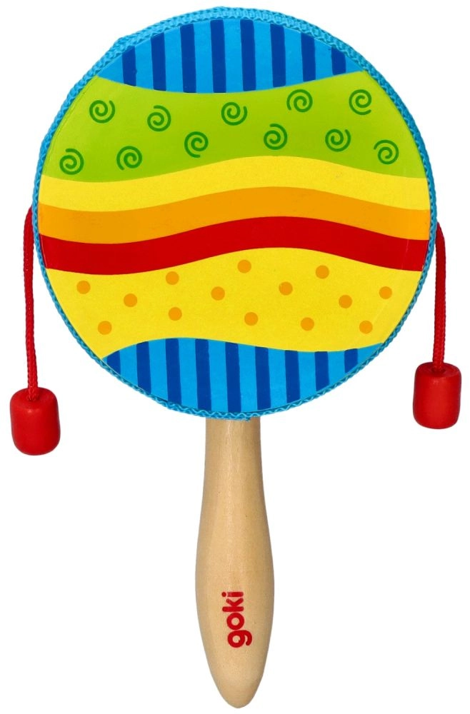 Traditsiooniline “kerjuse trumm” GOKI nüüdisaegses tõlgenduses on suurepärane saateinstrument lastele. Pöörake käepidet ja punased helmed nööride otsas kõlksuvad rütmiliselt vastu trummimembraani. Pööramise kiirus muudab loomulikult nii tempot kui ka kõla iseloomu, toetades kuulmistaju ja rütmitunnet.