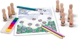See luksuslik templite komplekt toob lastele kõik vajaliku rõõmsate piltide, õnnitluskaartide ja kooliprojektide loomiseks. Tänu armastatud motiividega puidust templitele ja sügavatele, mahapestavatele tintidele saavad väikesed kunstnikud luua mitmekesiseid kombinatsioone ja lugusid.