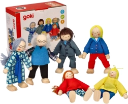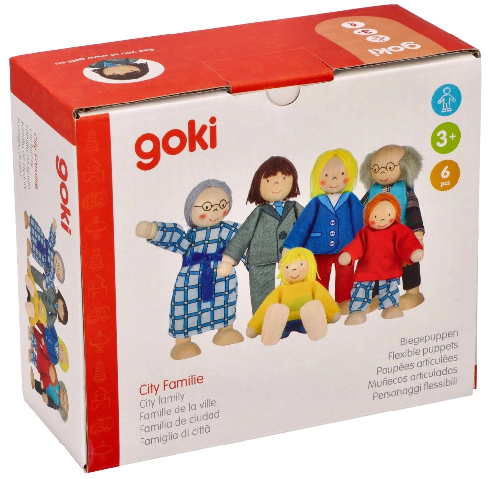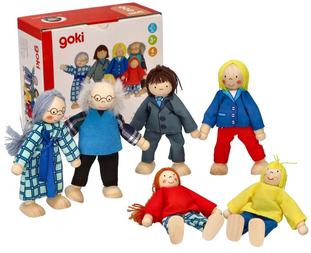 Avastage pere-mängu võlu klassikalise Goki nukkude komplektiga. Kuus hoolikalt valmistatud kuju – vanaema, vanaisa, ema, isa, tütar ja poeg – toetavad fantaasia arengut, suhtlemisoskusi ning sotsiaalset õppimist. Tänu painduvatele jäsemetele võtavad nad hõlpsalt erinevaid asendeid ja sobituvad ideaalselt iga stseeniga nukumajas.