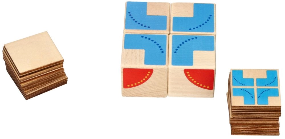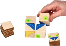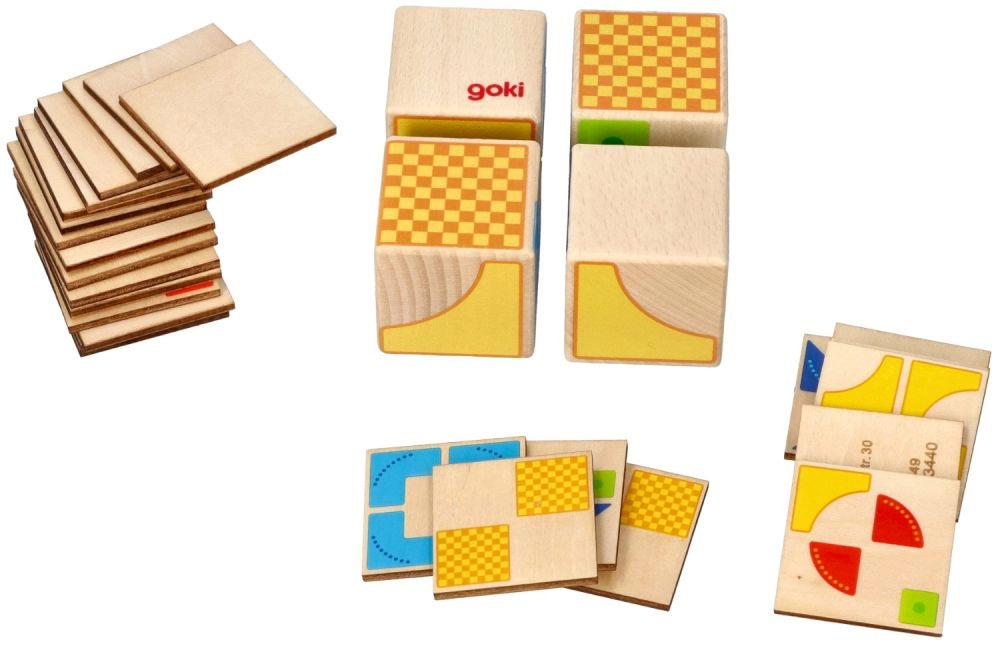 See näiliselt lihtne, kuid nutikas didaktiline mäng GOKI kaubamärgilt pakub 26 näidiskaarti, mille järgi lapsed panevad 4 puidust klotsist kokku erinevaid mustreid. Ideaalne eelkooliealistele ja noorematele koolilastele – iga ülesanne treenib ruumilist kujutlusvõimet, kontsentratsiooni ja kannatlikkust.