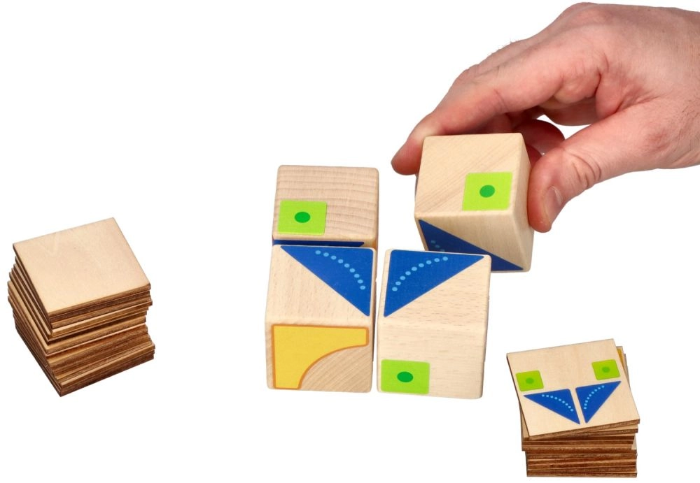 Nii klotsid kui ka kaardid on valmistatud vastupidavast puidust ja värvitud ohutute värvidega. Tänu kompaktsetele mõõtudele on mängi lihtne kaasa võtta – suurepärane reisile, lasteaeda ja koduseks harjutamiseks.