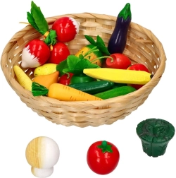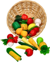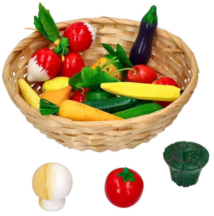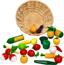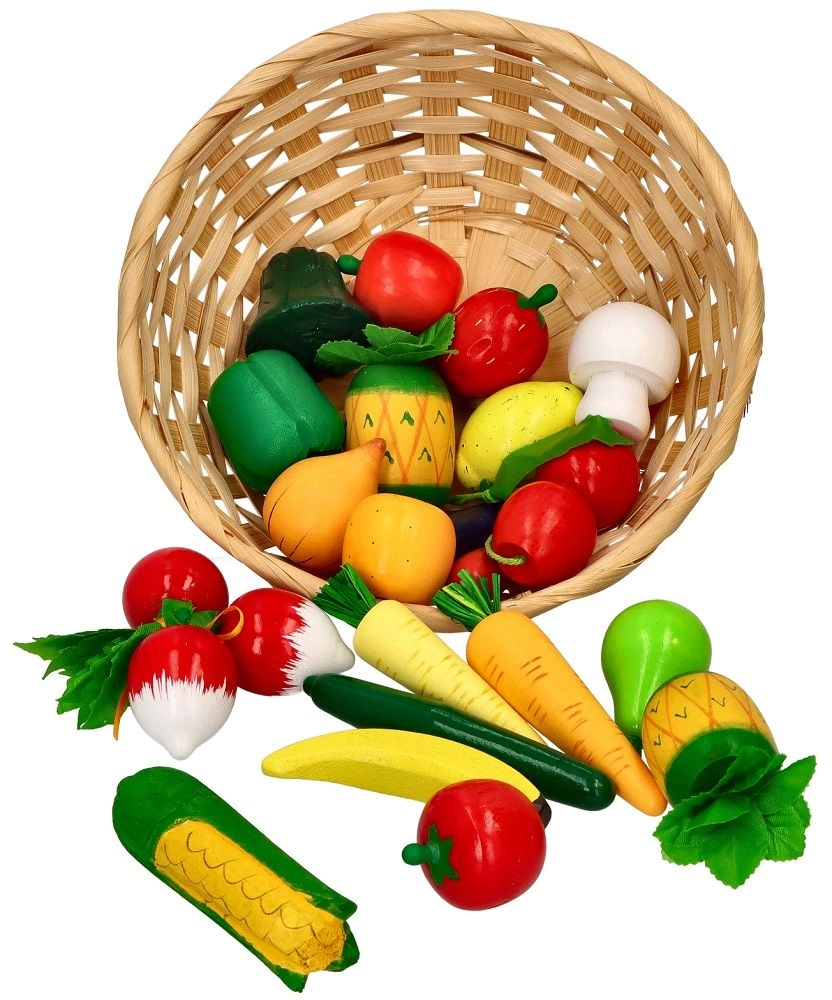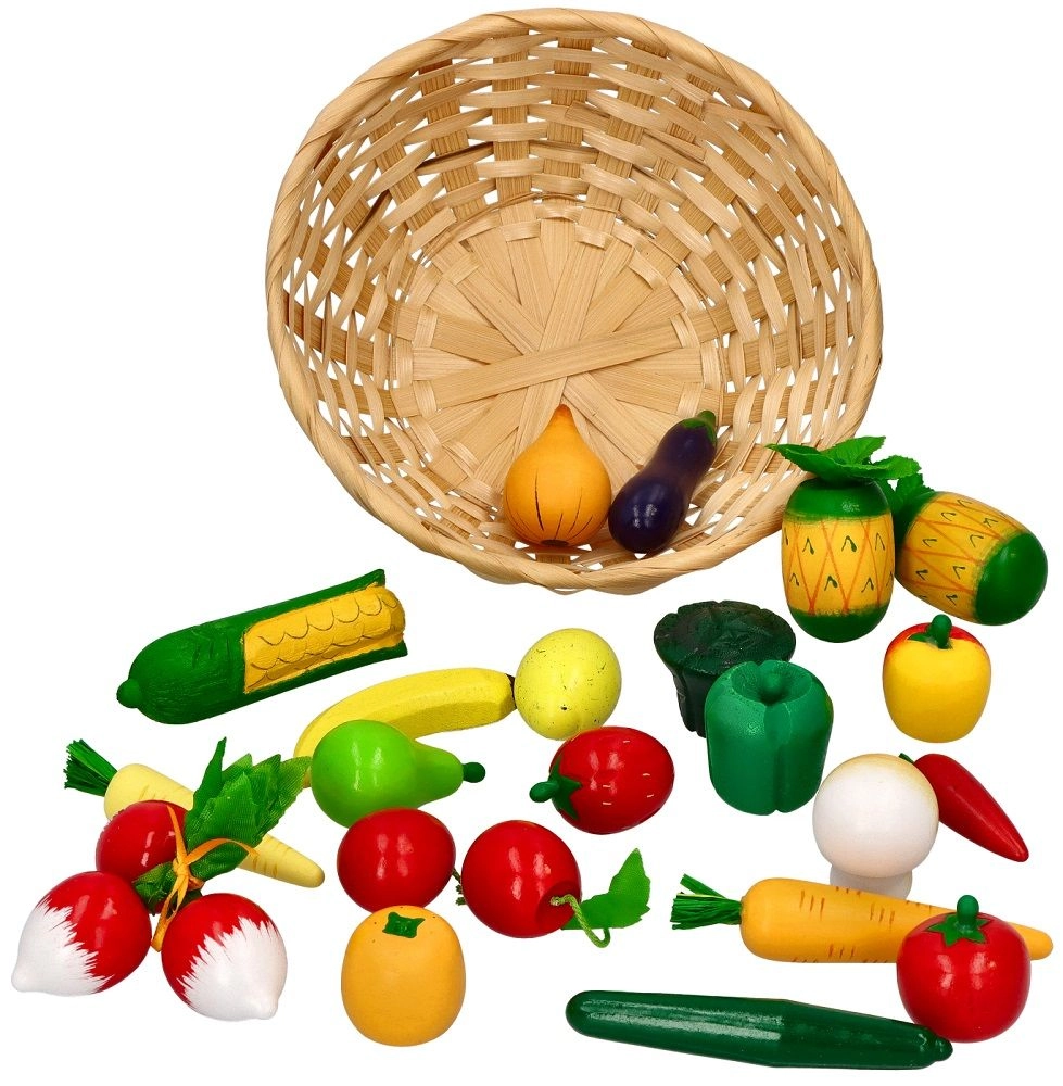 Mõõtudega 20 × 6,5 cm korv on mugav hoiustamiseks ja kaasavõtmiseks. Tänu 21 osale saavad lapsed jagada müüja ja ostja rolle, arendades suhtlust, sotsiaalseid oskusi ning õppides erinevaid puu- ja köögivilju.