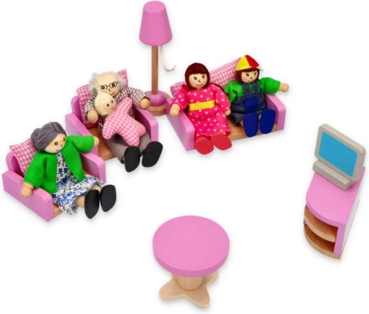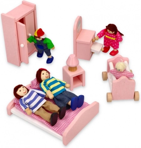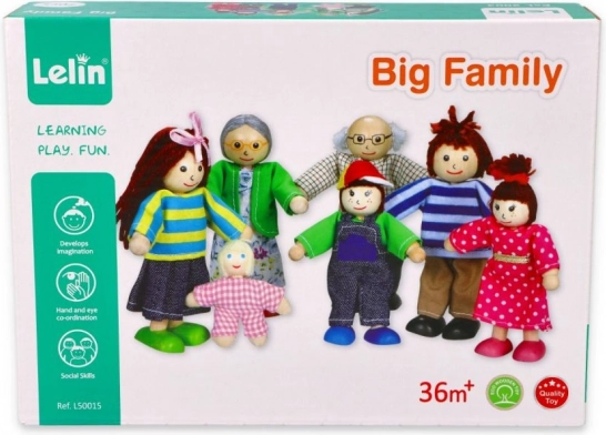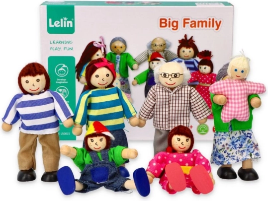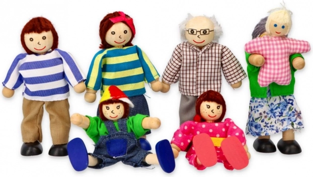 See detailselt viimistletud majapere on ideaalne täiendus igale nukumajale. Massiivpuidust tegelased värvilistes tekstiilides on mõnusad katsuda, ohutud ja vastupidavad igapäevaseks mänguks. Tänu erinevatele suurustele (vanemad, lapsed, beebi) loovad lapsed hõlpsasti oma lugusid pereelust.