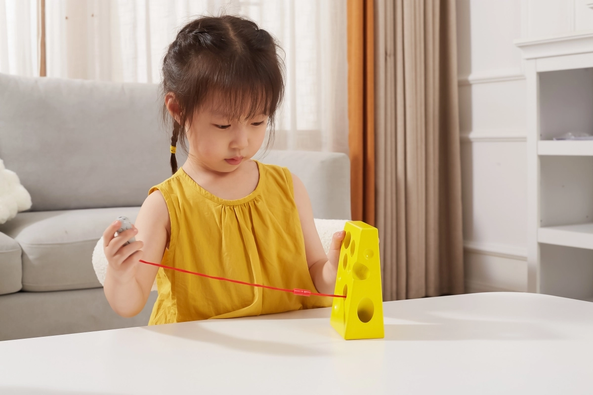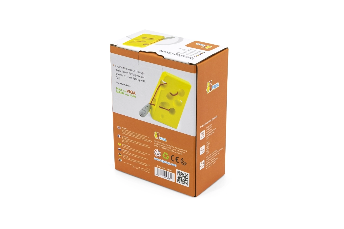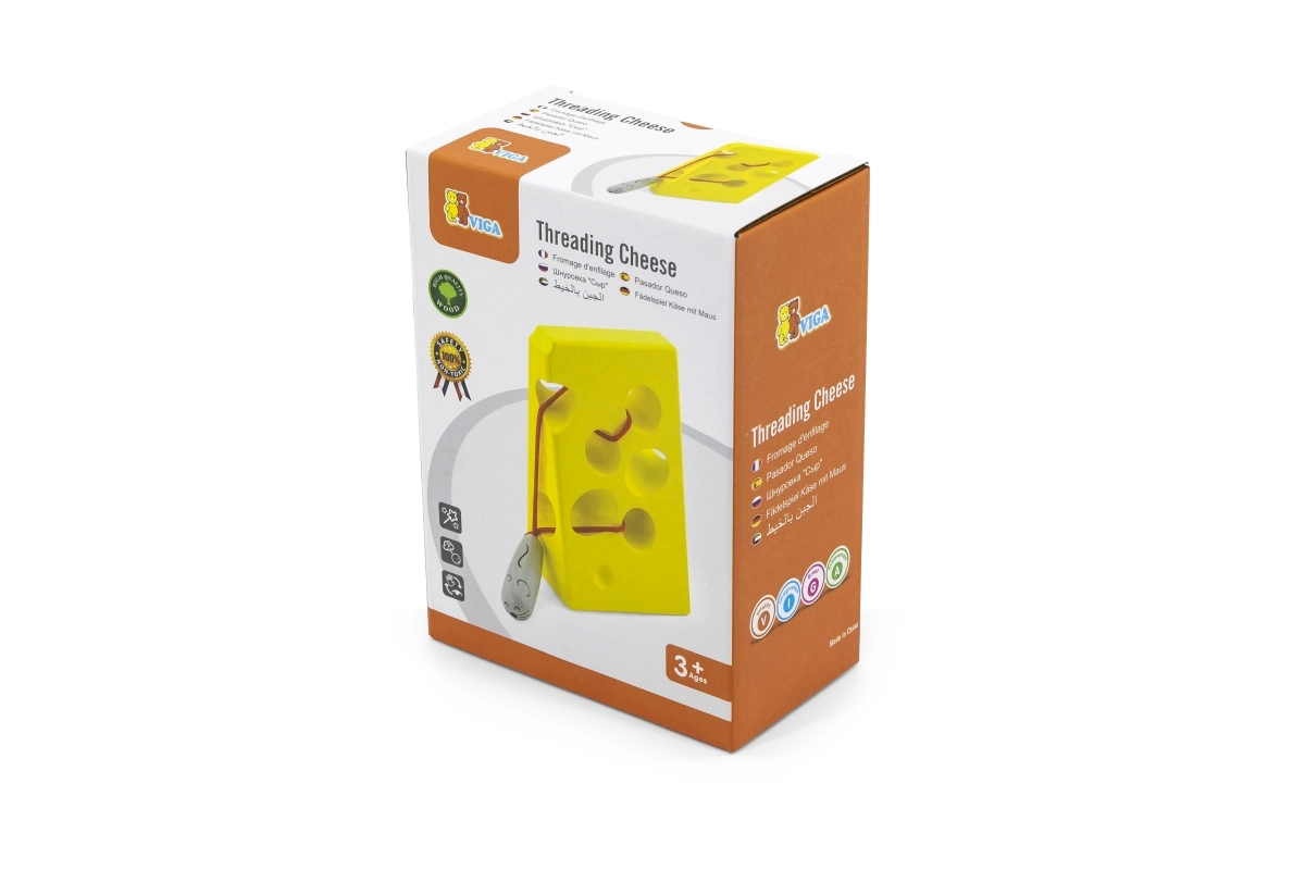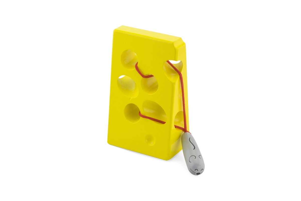 Lõbus juustukujuline läbipõimitav mänguasi kinnitatud nööri ja armsa hiirekesega arendab peenmotoorikat, silma-käe koordinatsiooni ja kannatlikkust. Ideaalne didaktiline mänguasi alates 3. eluaastast, mis pakub loovat põimimist ja vaikset, sisukat mängu nii kodus kui ka teel.