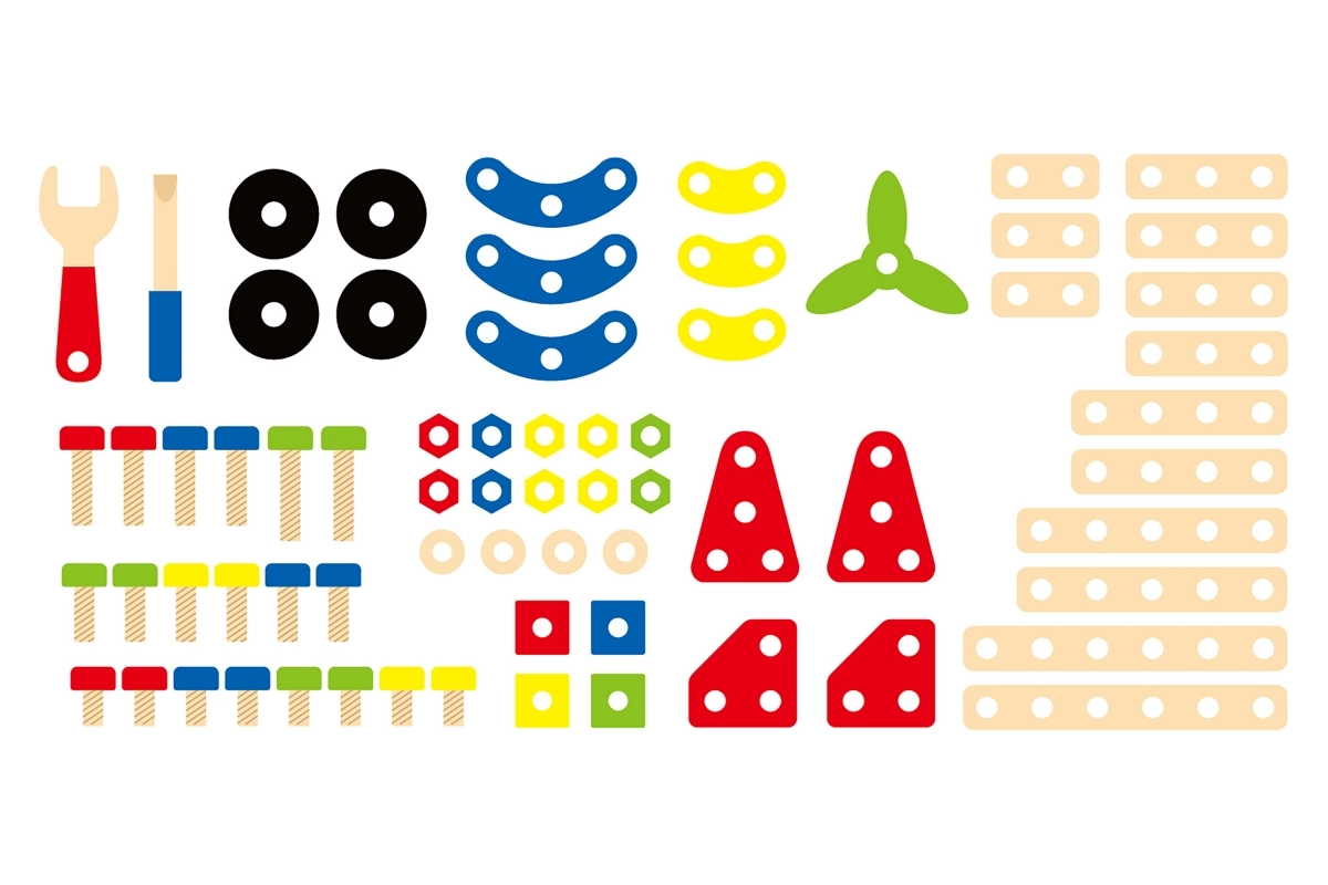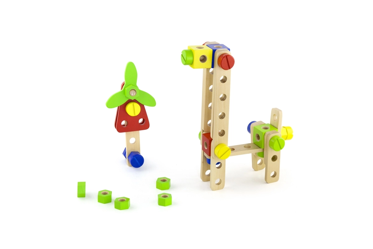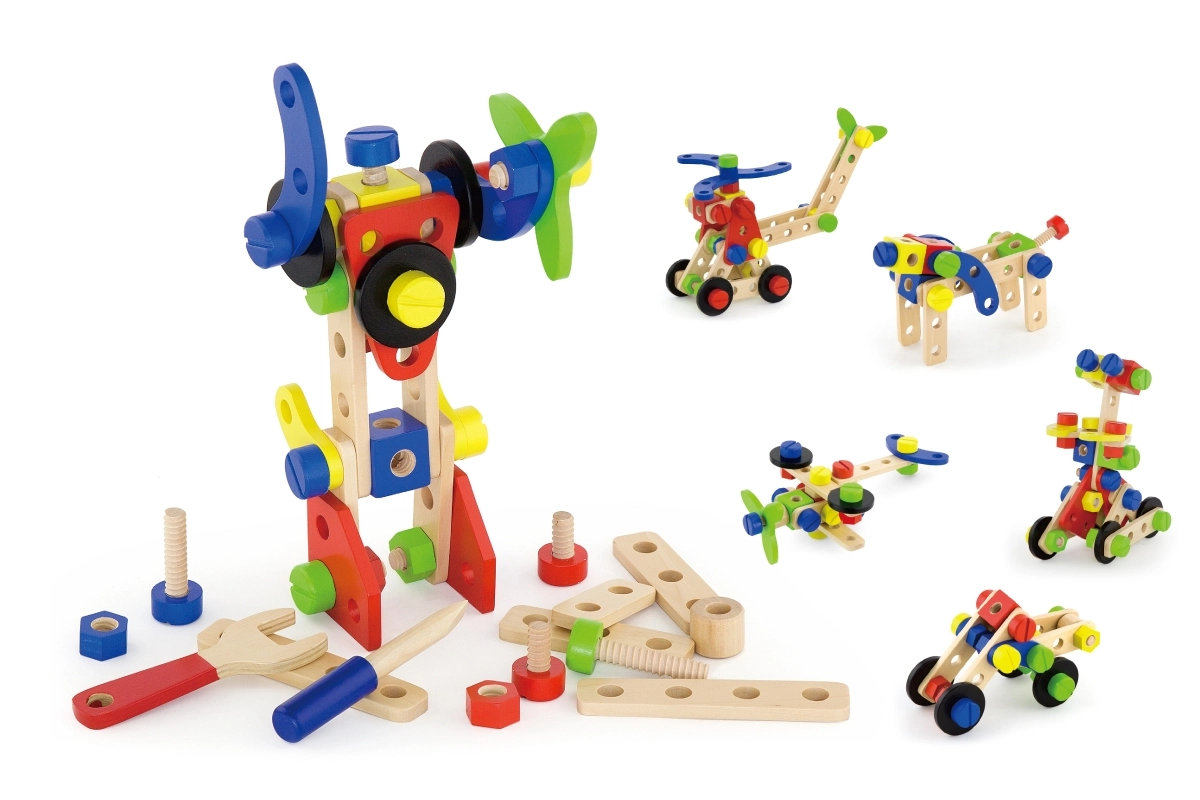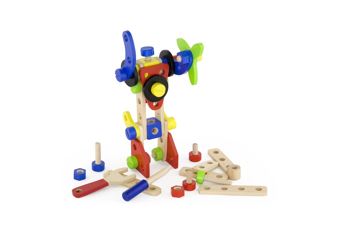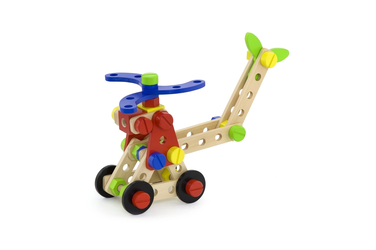 See universaalne puidust ehituskomplekt pakub lastele lõputuid ehitusvõimalusi – alates sõidukitest ja loomadest kuni helikopteri või robotini. Tänu tugevatele puidust detailidele, kruvidele ja ühendustele harjutavad lapsed käe-silma koordineerimist ning õpivad konstruktiivse mõtlemise aluseid.