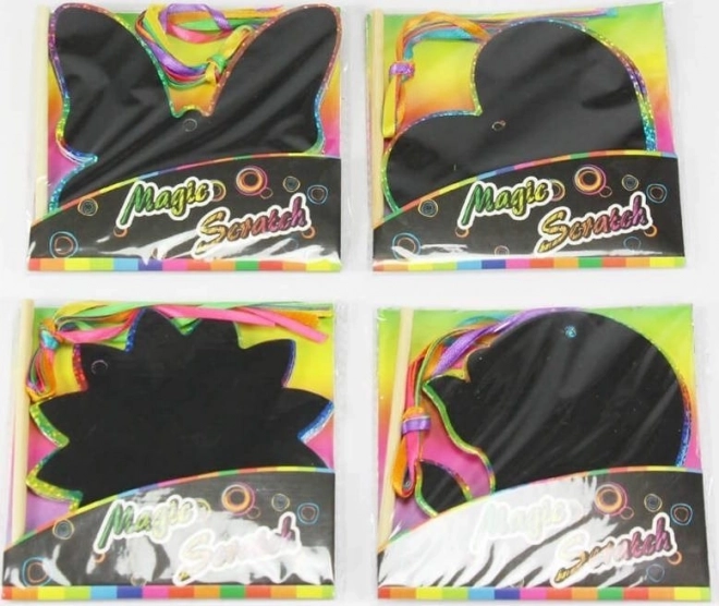 Lihtne teguviis, efektne tulemus – kraapige mööda ette trükitud jooni ning musta kihi alt ilmuvad vikerkaarevärvid. Valmis pildid saab tänu värvilistele lintidele kohe üles riputada ja lastetuba kaunistada. Ideaalne meisterdamiseks kodus, koolis ja huviringides.