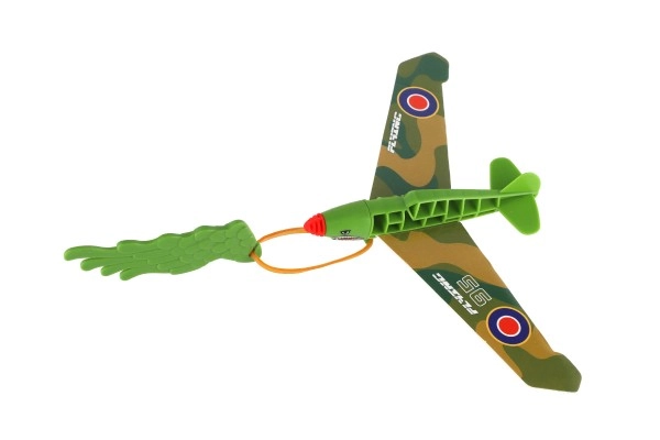 Lennukil on lihtne väljalaskemehhanism elastse kummipaelaga, mis võimaldab pikal distantsil lennata.