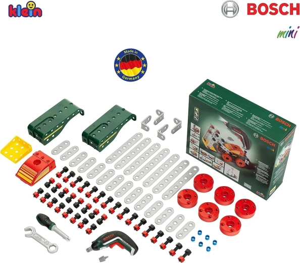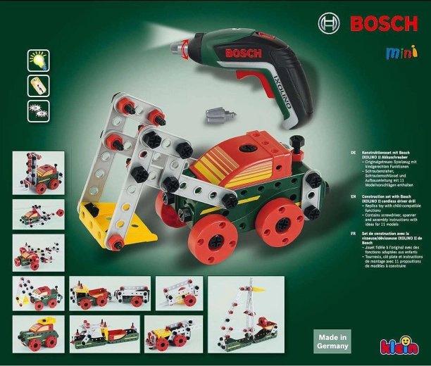 Laste ehituskomplekt sarjast BOSCH mini kaubamärgilt KLEIN pakub realistlikku aku-kruvikeerajat BOSCH Ixolino ja kokku 77 detaili loovaks ehitamiseks. Ehitada saab kuni 11 erinevat sõidukimudelit, arendades peenmotoorikat, loogilist mõtlemist ja fantaasiat. Suurepärane valik väikestele meisterdajatele alates 3. eluaastast.