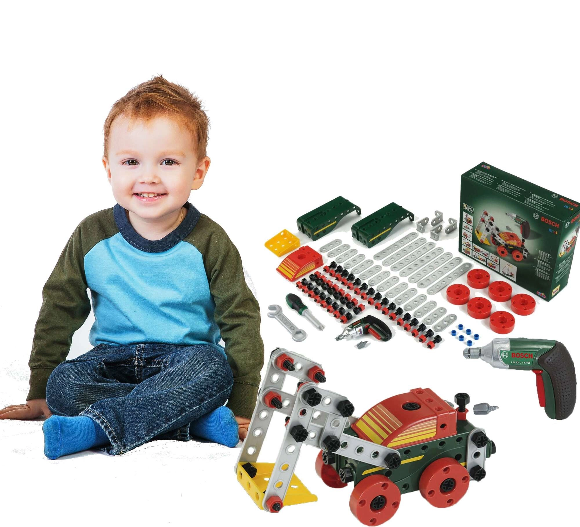 See rikkalikult varustatud ehituskomplekt ühendab loova kokku panemise realistliku mänguga päris tööriistadega. Lapsed saavad laste aku-kruvikeeraja BOSCH Ixolino abil kruvisid keerata, osi ühendada ning ehitada oma konstruktsioone või järgida kaasasolevaid juhendeid 11 sõidukimudelile.