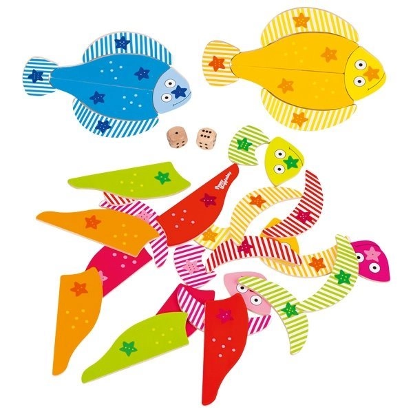 See värviline puidust mänguasi brändilt GOKI on loodud nii lõbustama kui ka harima lapsi. Komplekt koosneb kalamosaiikidest, mis tuleb kokku panna täringuvisete abil, muutes mängu nii lõbusaks kui ka põnevaks. Tootja pöörab suurt tähelepanu materjalide ohutusele ja tervisesõbralikkusele, mis on keskkonnale säästlikud.