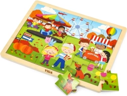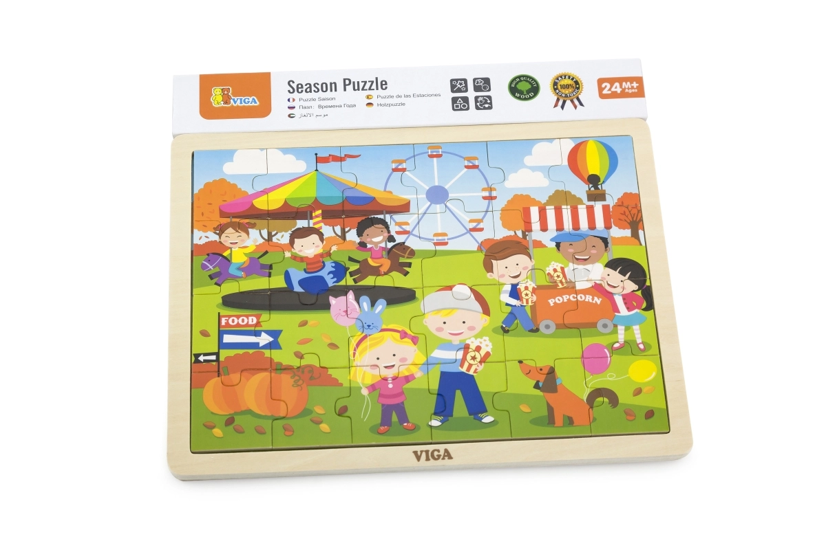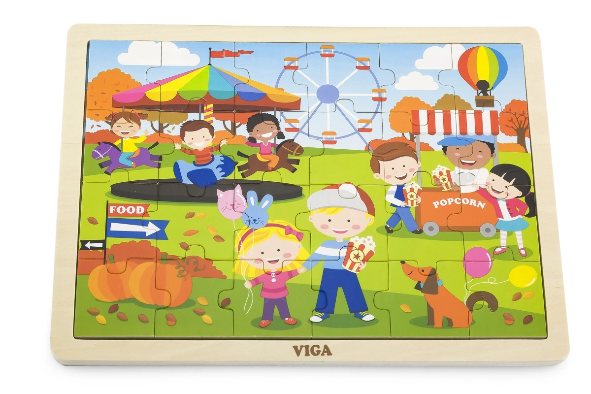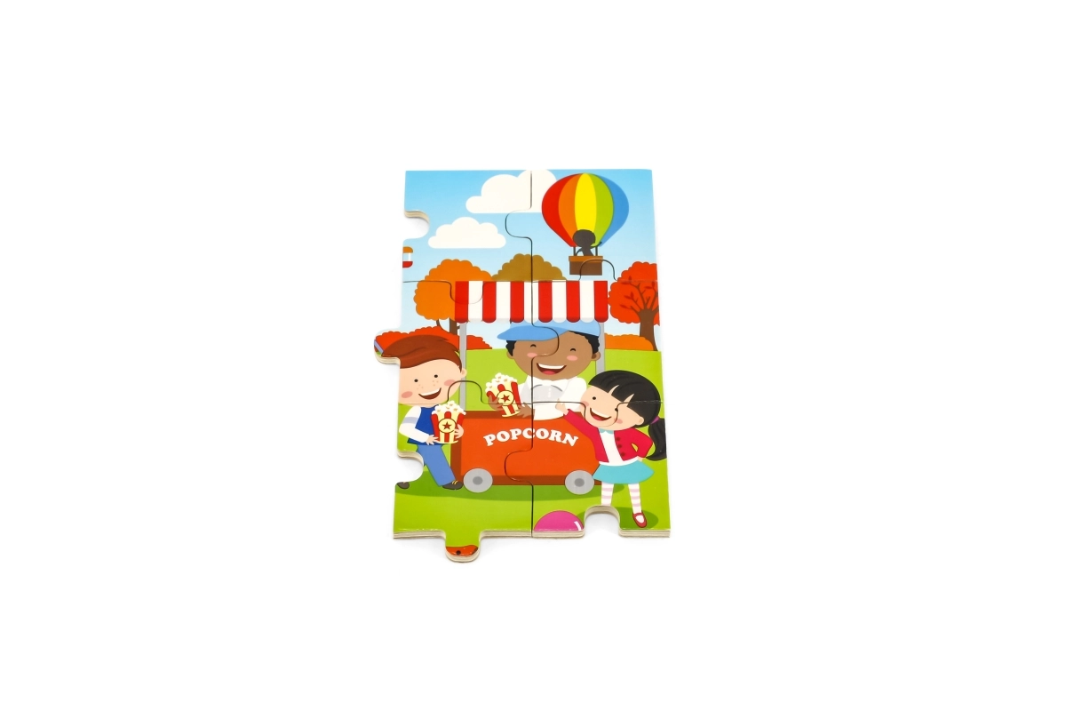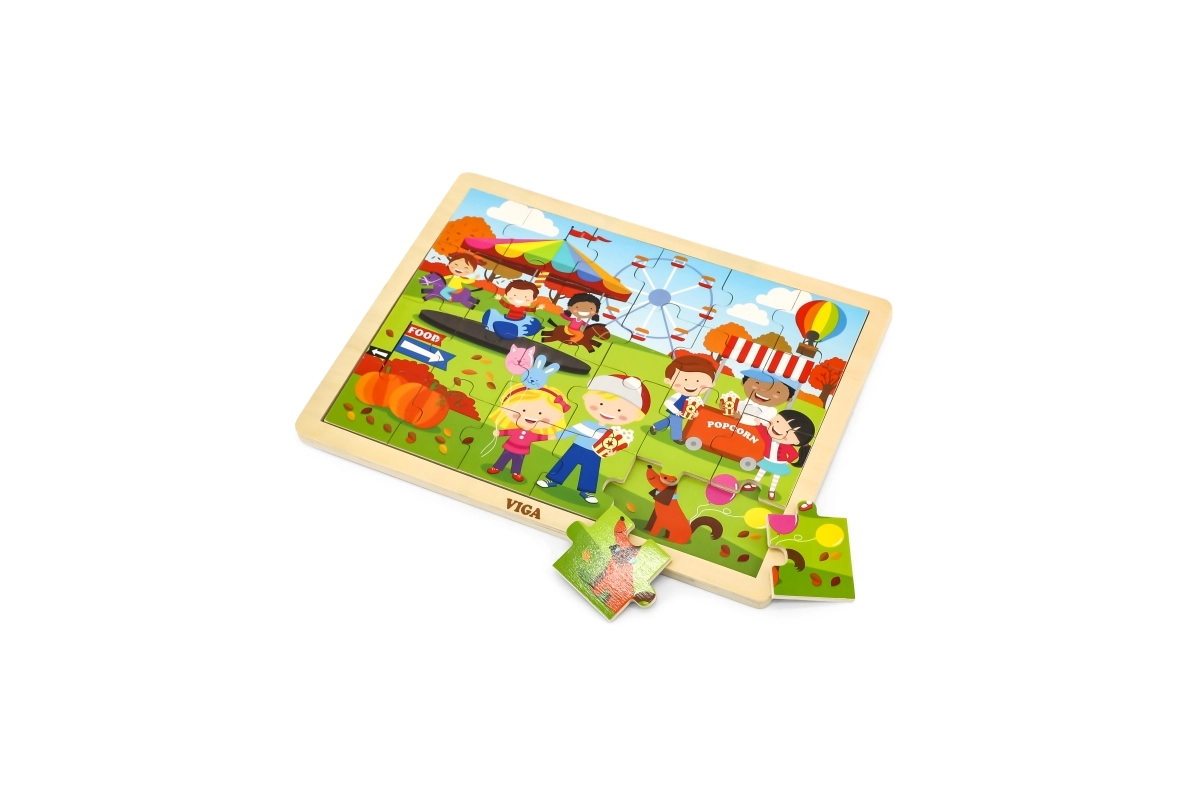 Avastage kvaliteetne laste puidust pusle rõõmsa sügislaada stseeniga. Tänu 24 vastupidavale tükile ja raamile sobib see hästi ka väiksematele lastele, kes harjutavad mängides loomulikult silma–käe koordinatsiooni ning kujundite ja värvide tajumist.