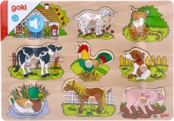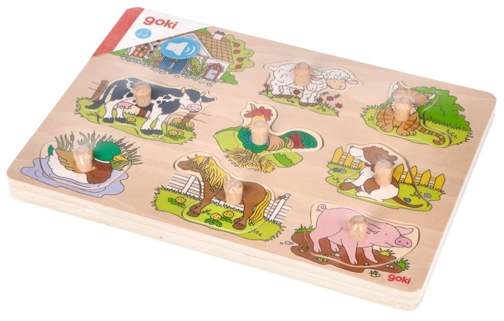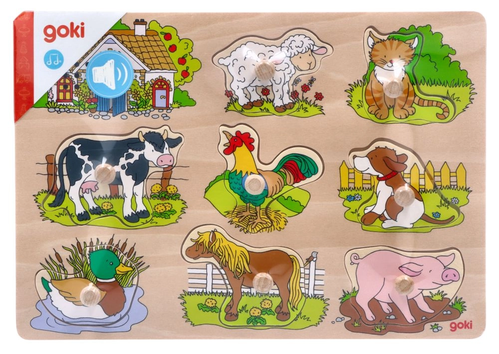 See puidust puslelaud sisaldab kaheksat koduloomade piltidega tükki, mis õigesse avasse asetamisel teevad iseloomulikku häält. Igal tükil on puidust nupp, mis tagab lihtsama käsitsemise ja turvalise paigutuse alusele. Puidust alus täpsete väljalõigetega aitab lastel tükid õigetele kohtadele asetada.