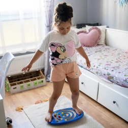 VIGA labürindiga tasakaalulaud muudab tasakaalutreeningu lõbusaks mänguks. Laps seisab libisemiskindlal pinnal jalalaba märgistusega ning lauda kallutades juhib värvilisi kuulikesi freesitud radadel. See interaktiivne abivahend arendab stabiilsust, käe-silma koordinatsiooni ja tugevdab süvalihaseid.