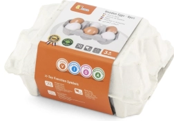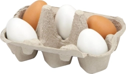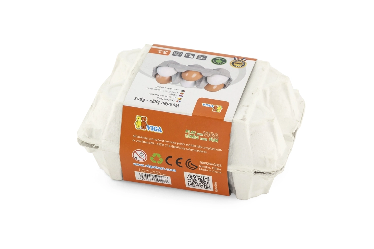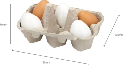 Komplekt sisaldab 6 puidust muna praktilises kartongkarbis, mis matkib tõetruult pärispakendit. Lapsed saavad matkida täiskasvanuid kokkamisel, „ostelda“ lastepoes või serveerida toite mänguköögis. Vastupidav materjal ja sile lakitud pind on meeldivad katsuda ja lihtsad hooldada.
