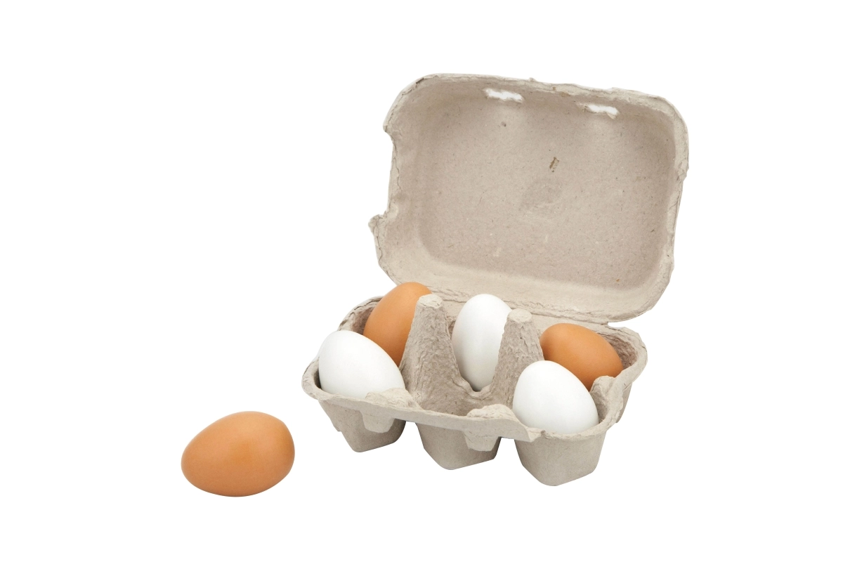Kuus puidust muna kartongkarbis näevad välja nagu päris pakk. Ideaalne laste kööki ja mänguturule.