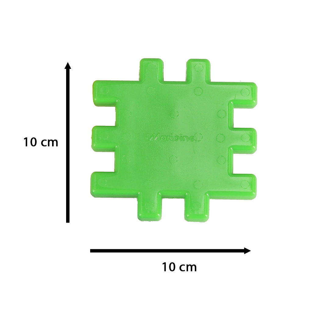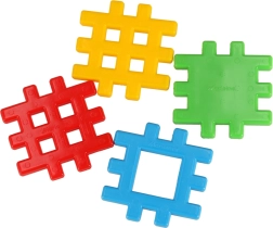 U 10,5 × 10,5 cm tükid võrestiklukuga püsivad kindlalt koos ja on mugavad käes – täiuslikud väikestele kätele alates 2. eluaastast.