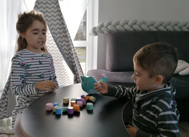 Avastage lõbus puidust tasakaalumäng narvaliga, kus lapsed tasakaalustavad värvilisi silindreid mereloomade motiividega kiikval alusel. Eesmärk on hoida tasakaalu ja laduda tükke nii, et narval ei läheks ümber – suurepärane treening peenmotoorikale, käe-silma koordinatsioonile ja kannatlikkusele.