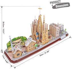See 3D‑pusle toob sinu koju Barcelona õhustiku, sealhulgas kuulsa SAGRADA FAMILIA ja teised arhitektuuripärlid. Tükid on eelnevalt välja lõigatud, need murduvad plaadilt kergesti ning juhendi abil saad need sujuvalt kokku panna ilma liimi ja käärideta. Valmis mudel mõjub stiilse aksessuaarina elutoas, kabinetis või lastetoas.