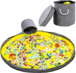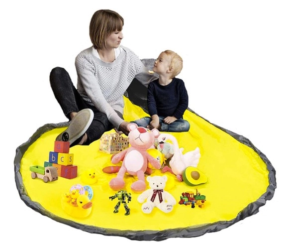 Laota laiali suur matt (Ø 135 cm), lase lastel mängida ja tõmba lõpetamisel lihtsalt stoppersulguriga nöörist – mänguasjad libisevad hetkega korvi.