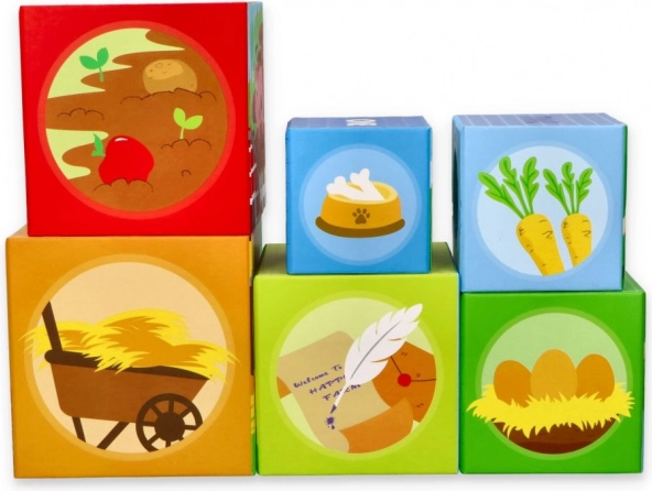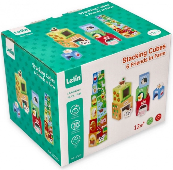 See värvikas taluteemaline laotavate klotside komplekt pakub lastele lõputuid mänguvõimalusi: kõrge torni ehitamisest kuni paigutamise ja sortimiseni ning numbrite, viljade ja armsate loomade avastamiseni. Iga klots on illustreeritud nii, et toetada visuaalset taju, kujude ja hulga äratundmist ning esmast arvutamist.