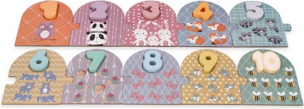 See kvaliteetne puidust pusle ühendab mängu ja õppimise. Igal numbril 1–10 on oma tahvel armsate loomadega vastavas koguses, mis aitab lapsel kergesti mõista numbri ja hulga seost. Kumerad, värvilised numbrid on väikestele kätele mugavad ning toetavad peenmotoorika ja nägemistaju arengut.