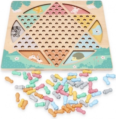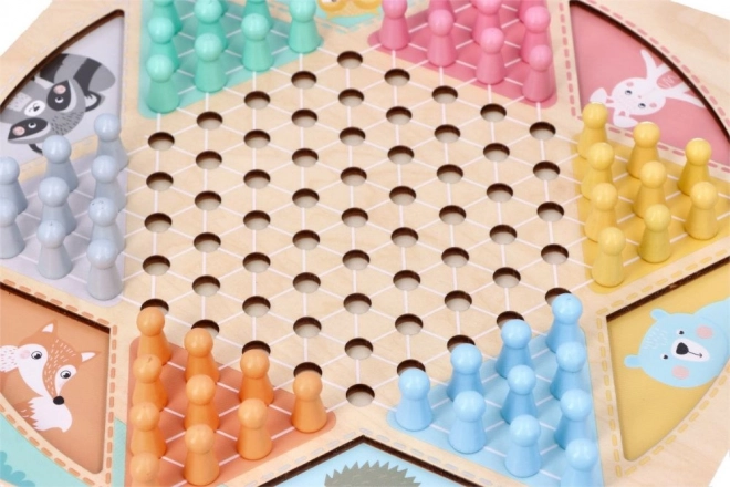 Kahepoolne puidust mängulaud mõõtudega ligikaudu 30 × 30 cm on kaunistatud õrnade loomamotiividega ning seda täiendavad värvilised, kergesti haaratavad nupud. Tugev teostus ja selge graafika teevad selle ideaalseks ühiseks mänguks nii lastele kui täiskasvanutele.