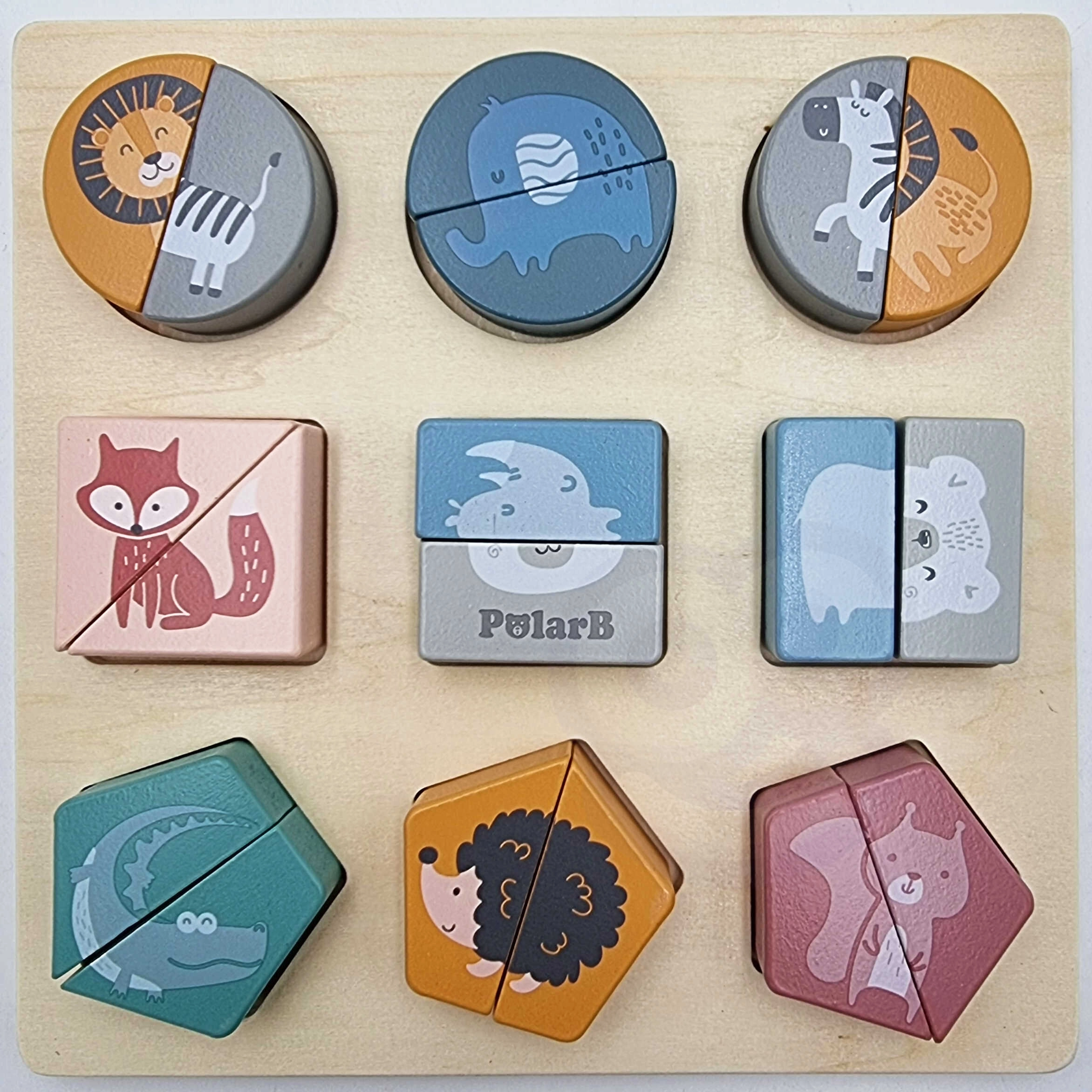 9 värvilist loomatükki toetavad tunnetuslikku arengut ja laiendavad laste sõnavara – lõbus viis õppida kujundeid ja loomade nimesid.