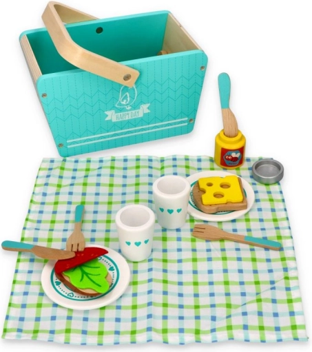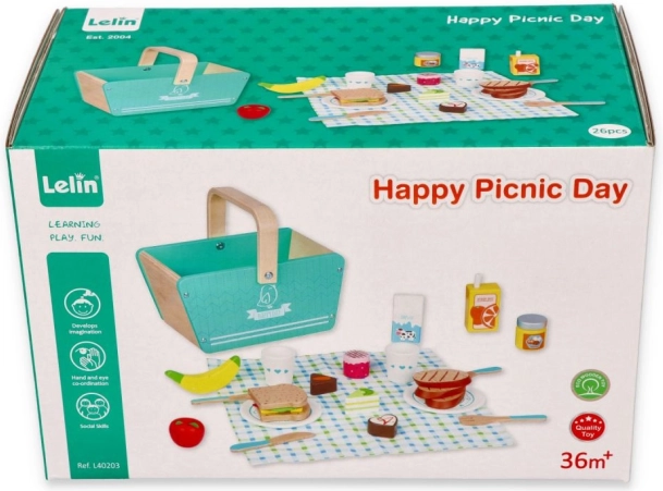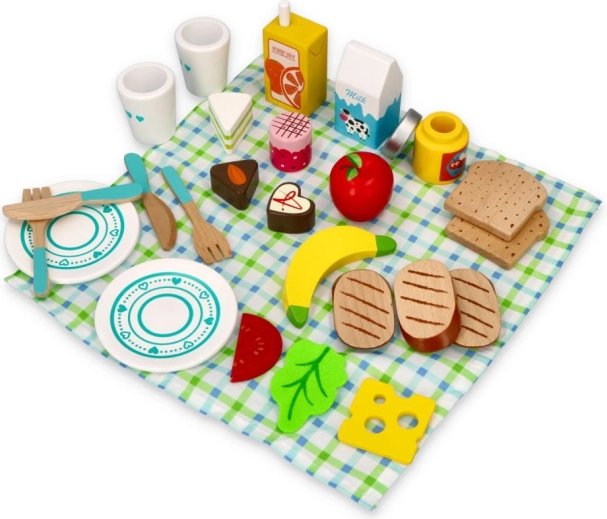 Tänu siledalt viimistletud osadele on mäng turvaline ja meeldiv puudutada. Lapsed harjutavad peenmotoorikat, käe-silma koostööd ning suhtlemist ühise mängu käigus. Pärast piknikku saab kõik hõlpsalt korvi tagasi panna, muutes komplekti mugavaks nii kaasaskandmiseks kui ka hoiustamiseks.