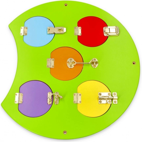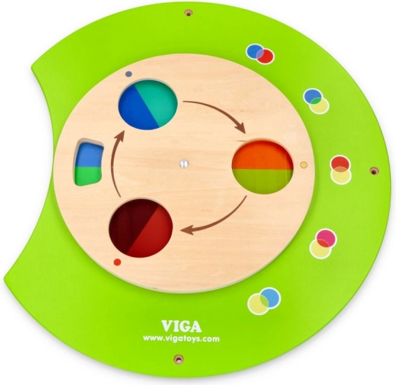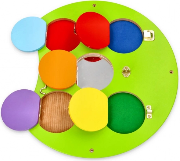 Uurige värvide maailma selle rööviku-kujulise seinakomplekti abil. See sisaldab viit interaktiivset osa, mis võimaldavad lastel mängides õppida ja arendada erinevaid oskusi: