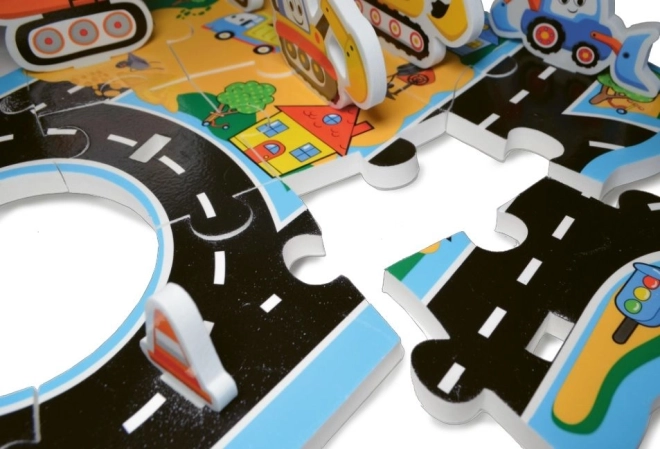 See värviküllane vannikomplekt muudab iga vanniskäigu seikluseks. Kerged vahutükid ujuvad vees ja niisutatuna kinnituvad hõlpsasti siledatele pindadele, nagu plaadid või vanni serv. Lapsed saavad laduda teid, paigutada liiklusmärke ja mängida ehitusmasinatega, õppides samal ajal liiklusreegleid.