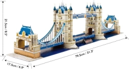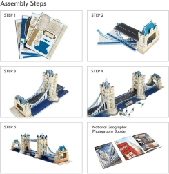 Avasta Londonit, ehitades ühe selle kuulsaima sümboli – Tower Bridge’i. National Geographicu sarja 3D-pusle CubicFunilt pakub realistlikku teostust, täpseid detaile ja meeldivat ehituskogemust ilma liimi vajaduseta. U umbes 3 mm paksune vaht koos laminaattrükiga tagab valminud mudelile vastupidavuse ja kauni välimuse.