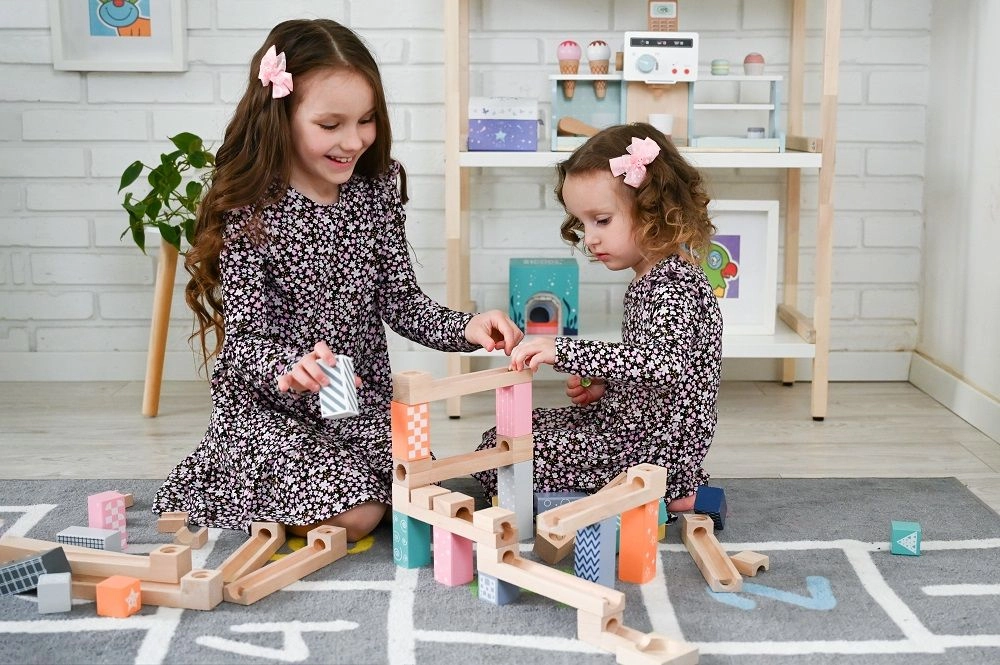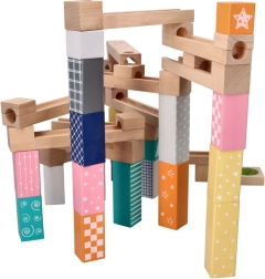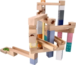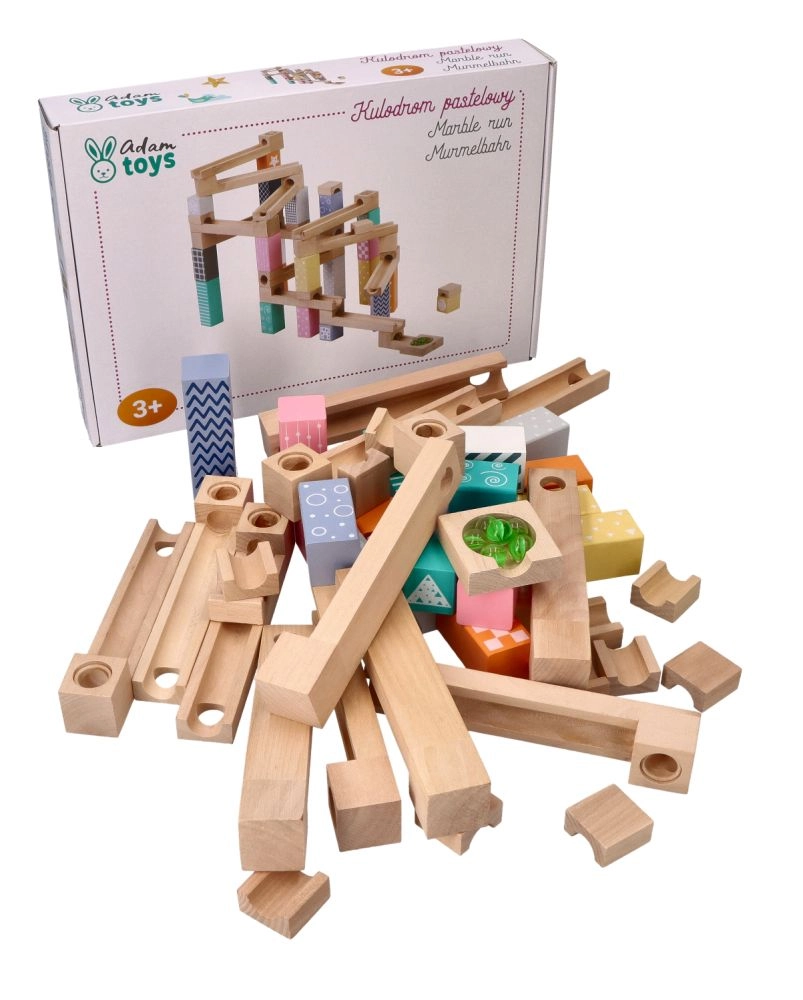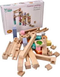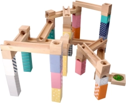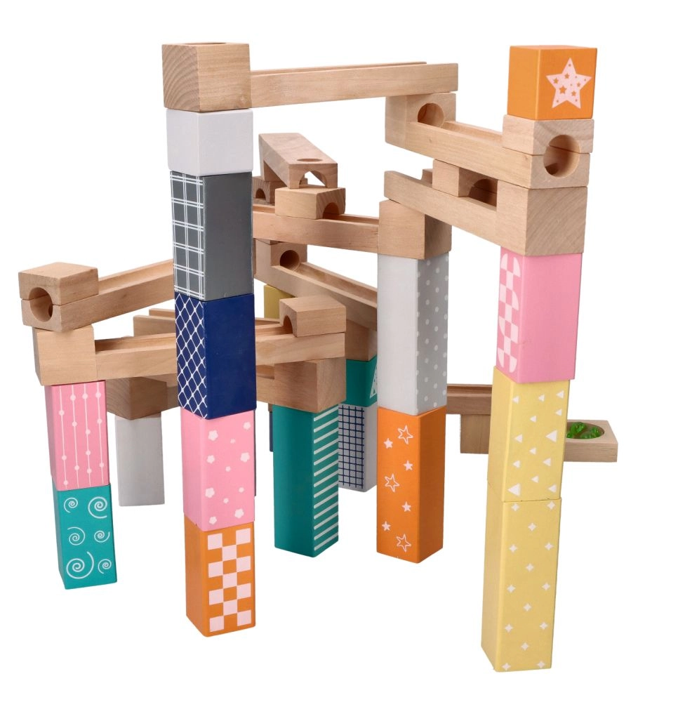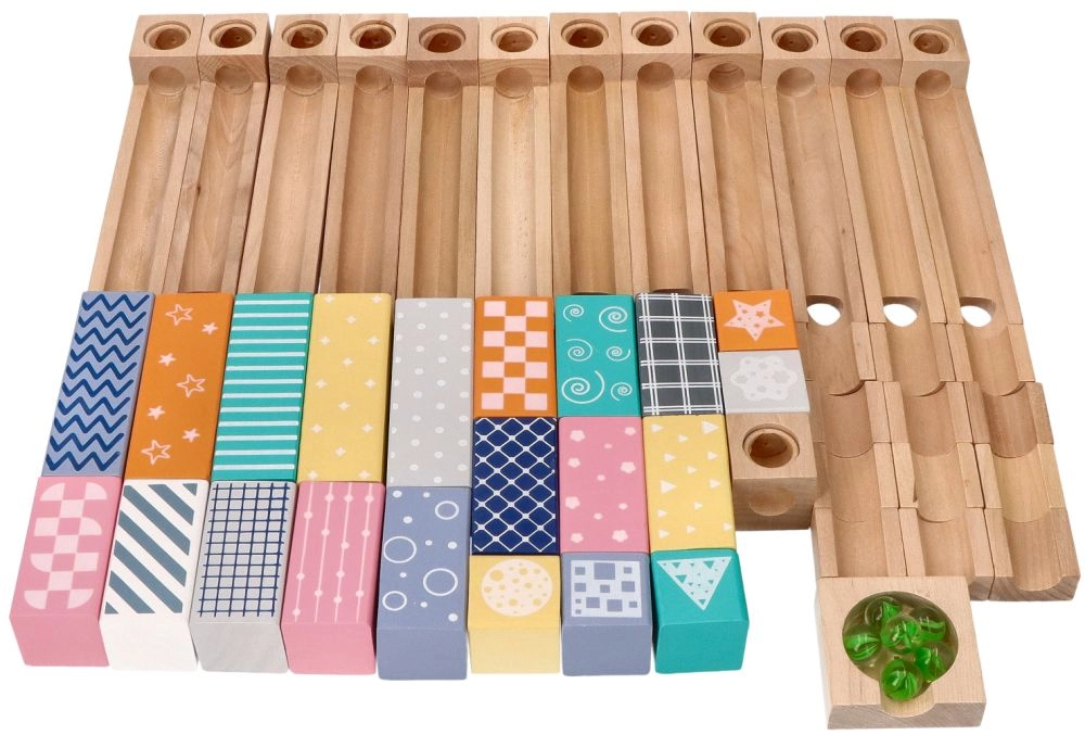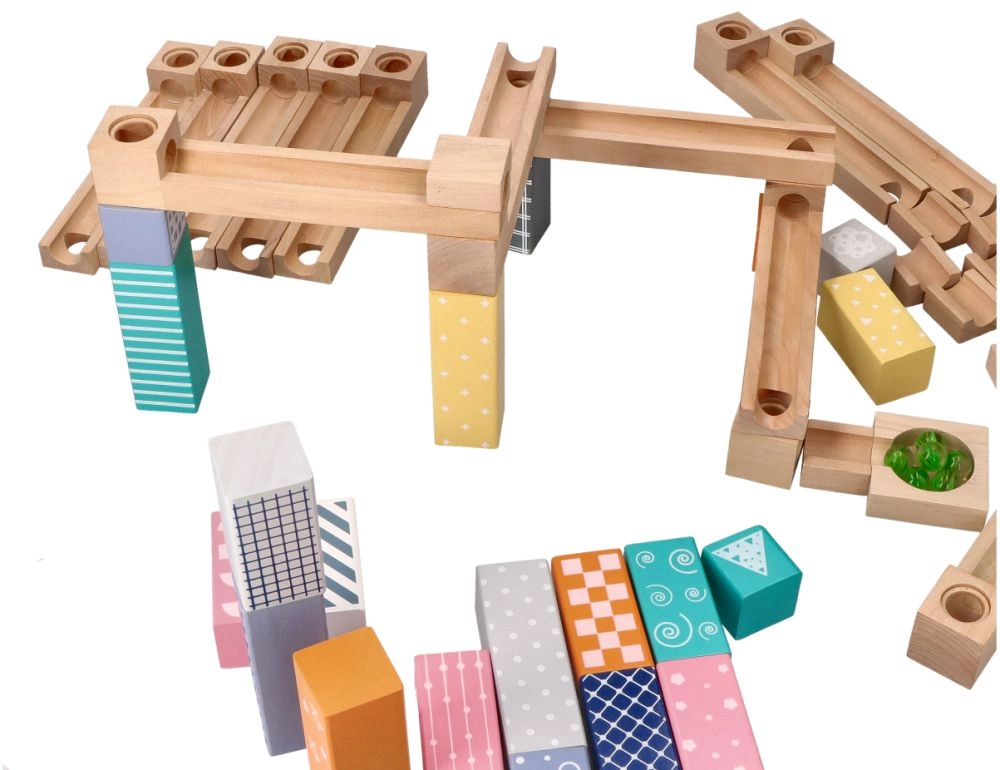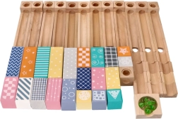 See kvaliteetne, pehmetes pastelltoonides puidust kuulirada võimaldab lastel ehitada originaalseid trasse ja jälgida, kuidas kuulid sööstavad mööda soone, sildade ja avadega radasid. Vastupidavad puidust klotsid trükitud mustritega pakuvad stabiilsust ja visuaalset atraktiivsust ning arendavad ruumilist kujutlusvõimet.