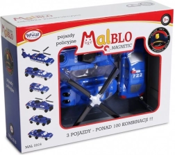 Avasta tegevusrohke maailm MalBlo MAGNETIC politseeseeriaga. Tänu nutikale magnet- ja klõpsühendusele saavad lapsed mooduleid hõlpsalt kokku ühendada ja luua helikopteri, auto või eriüksuse sõiduki – seda kõike vaid hetkega. Komplekt sisaldab 9 osa (3 valmissõidukit), mida saab vabalt kombineerida kümneteks originaalseteks variantideks.