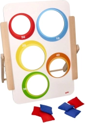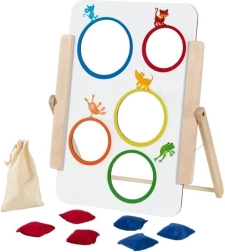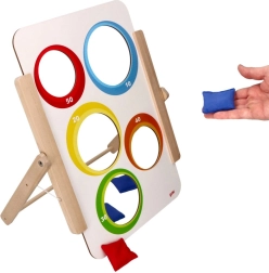 Sihtmärgi saab hõlpsasti püsti panna lauale või põrandale ning tänu 6 kangast viskekotile (3 punast, 3 sinist) on mäng kohe valmis alustamiseks. Noorematele saab valida „võitva ava“, vanemad hindavad punktiarvestust ja viskestrateegiat. Ideaalne koju, lasteaeda, pikapäevarühma ja ka logopeedilisteks harjutusteks.