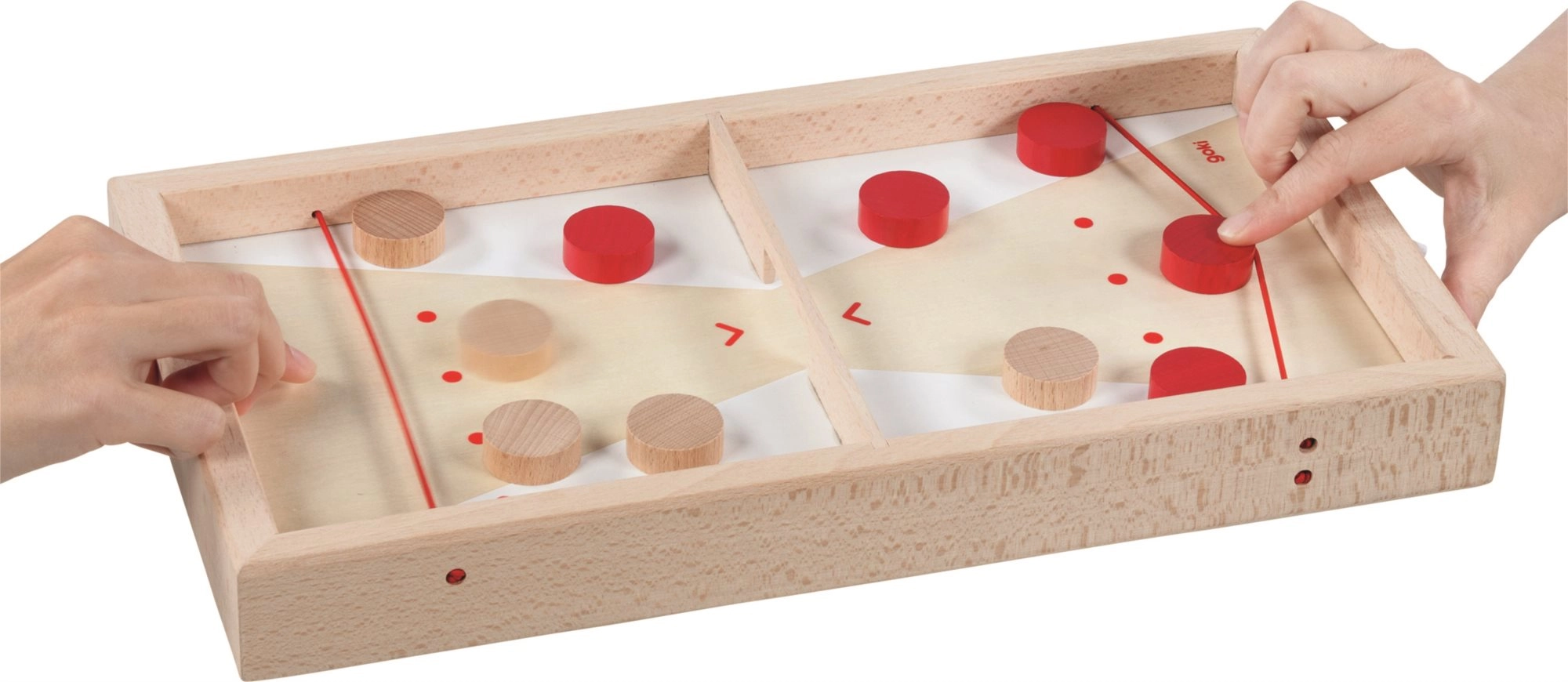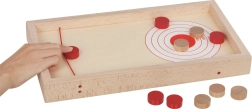 See kahepoolselt kasutatav puidust lauamäng pakub kahte mängukogemust ühes komplektis. Super Puck režiimis püüavad kaks mängijat tulistada oma kettad võimalikult kiiresti avause kaudu vastase poolele, kasutades elastikuid. Pööra laud ümber ja saad rahulikuma, ent pingelise täpsus- ja punktimängu märklaudade tabamisega.
